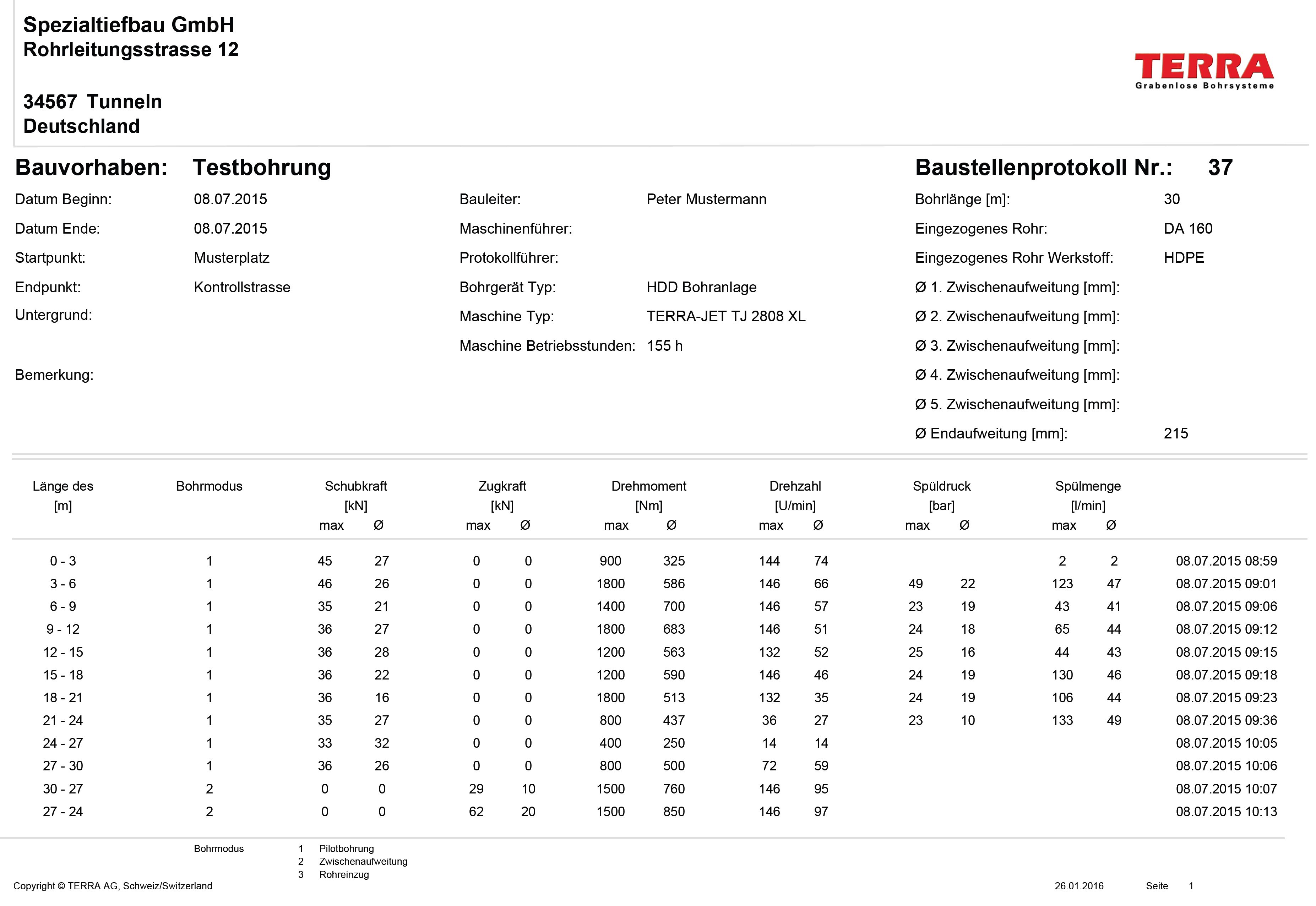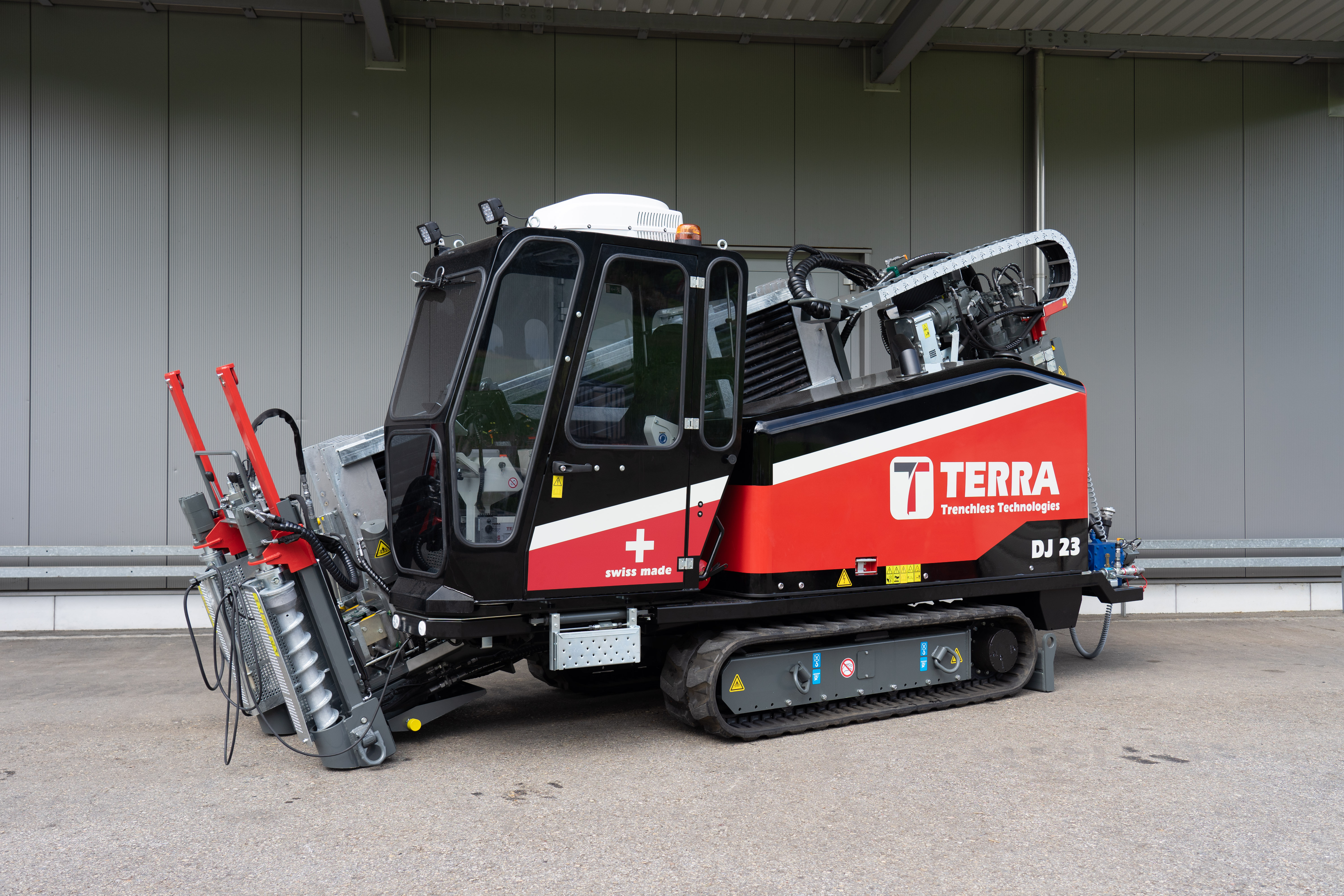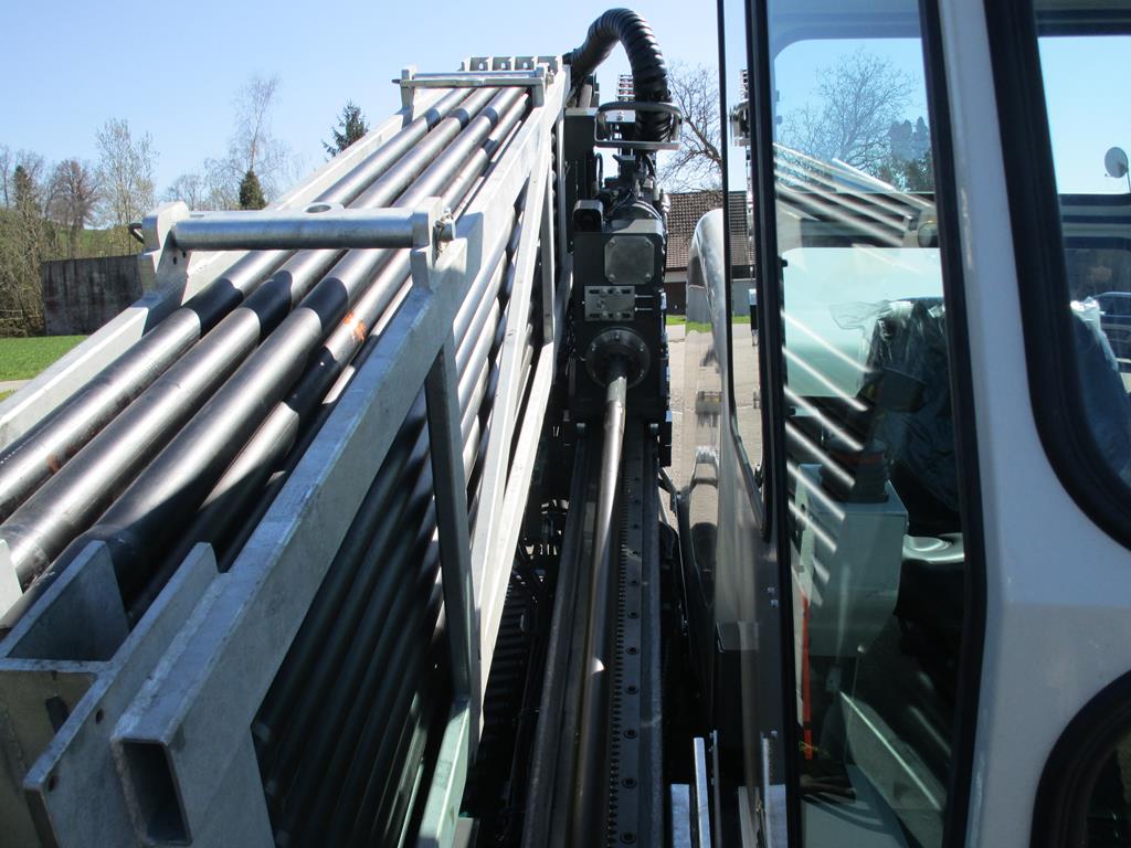 Mit einer extrem hohen Drehzahl am Bohrgestänge von 284 U/min erreicht er höchste Geschwindigkeit, sei es bei der Pilotbohrung oder beim Aufweitvorgang. 11 Tonnen Zug- und Schubkraft sowie 3'100 Nm Drehmoment ermöglichen ein zuverlässiges und rasches Abwickeln Ihrer Baustelle.
