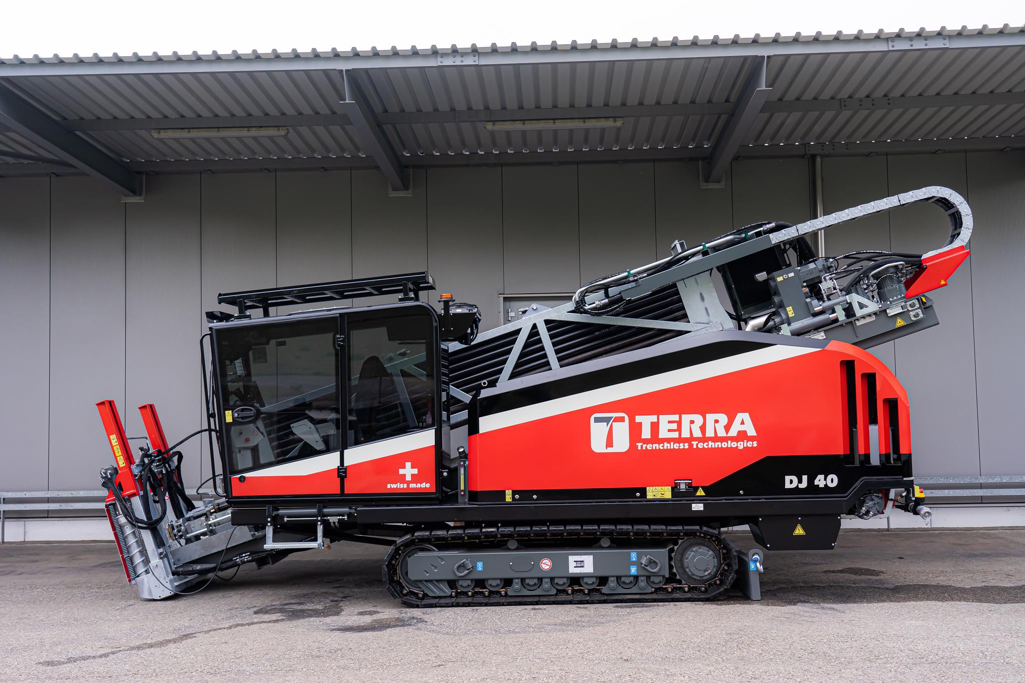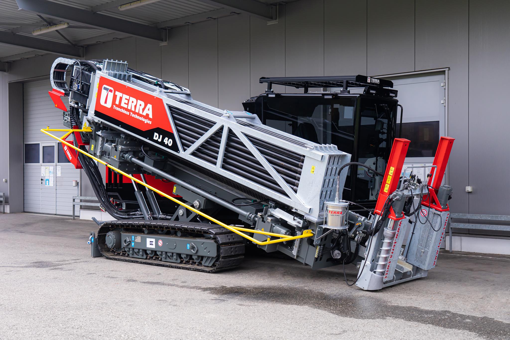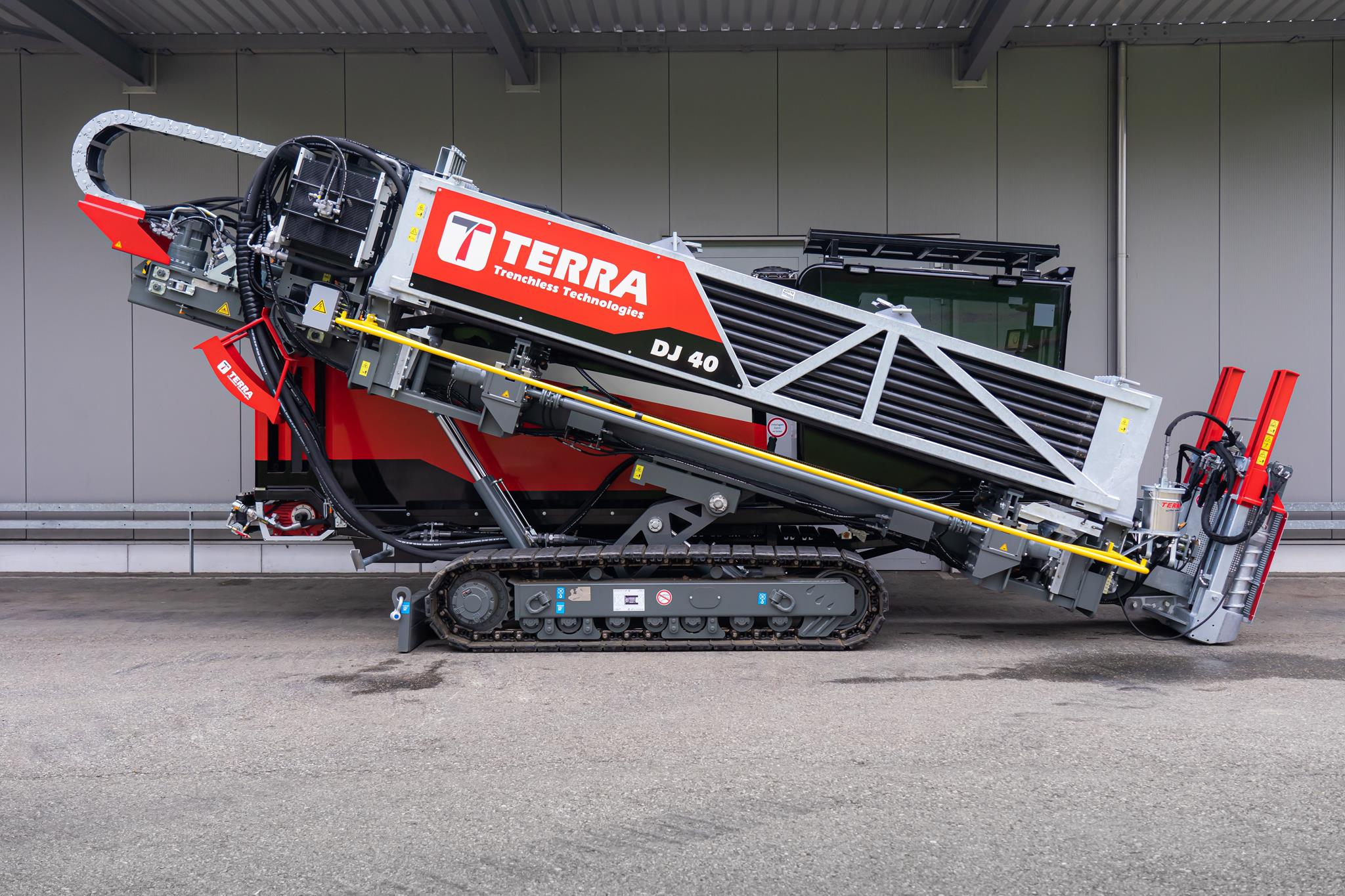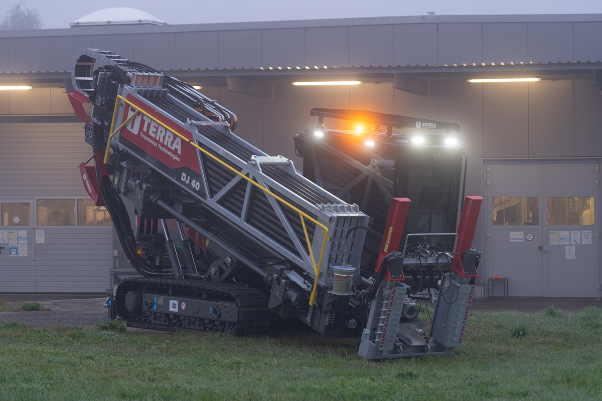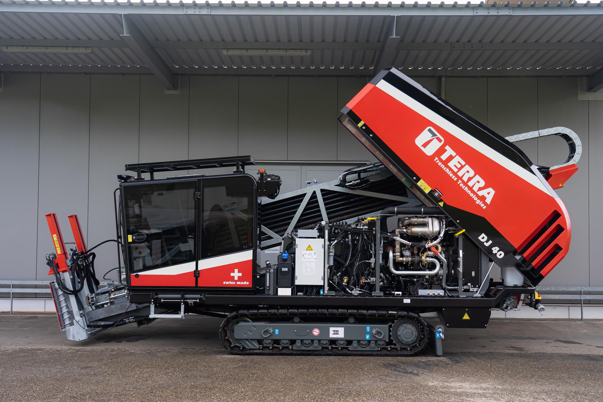 Der TERRA-JET DJ 40 setzt neue Massstäbe in der HDD-Branche. Mehr Leistung, höhere Produktivität sowie eine lange Lebensdauer wurden von unseren Kunden gefordert. Die DJ 40 zeichnet sich durch all diese Eigenschaften aus. Ausgestattet mit einem 189 PS starken Perkins-Dieselmotor (Stufe Euro 5) leistet der TERRA-JET DJ 40 bis zu 18 Tonnen Zug- und Schubkraft, 8.000 Nm Drehmoment und eine maximale Drehzahl von 255 U/min am Bohrgestänge. Mit seinen insgesamt 228 m Bohrstangen an Bord können extrem lange Strecken zurückgelegt werden.