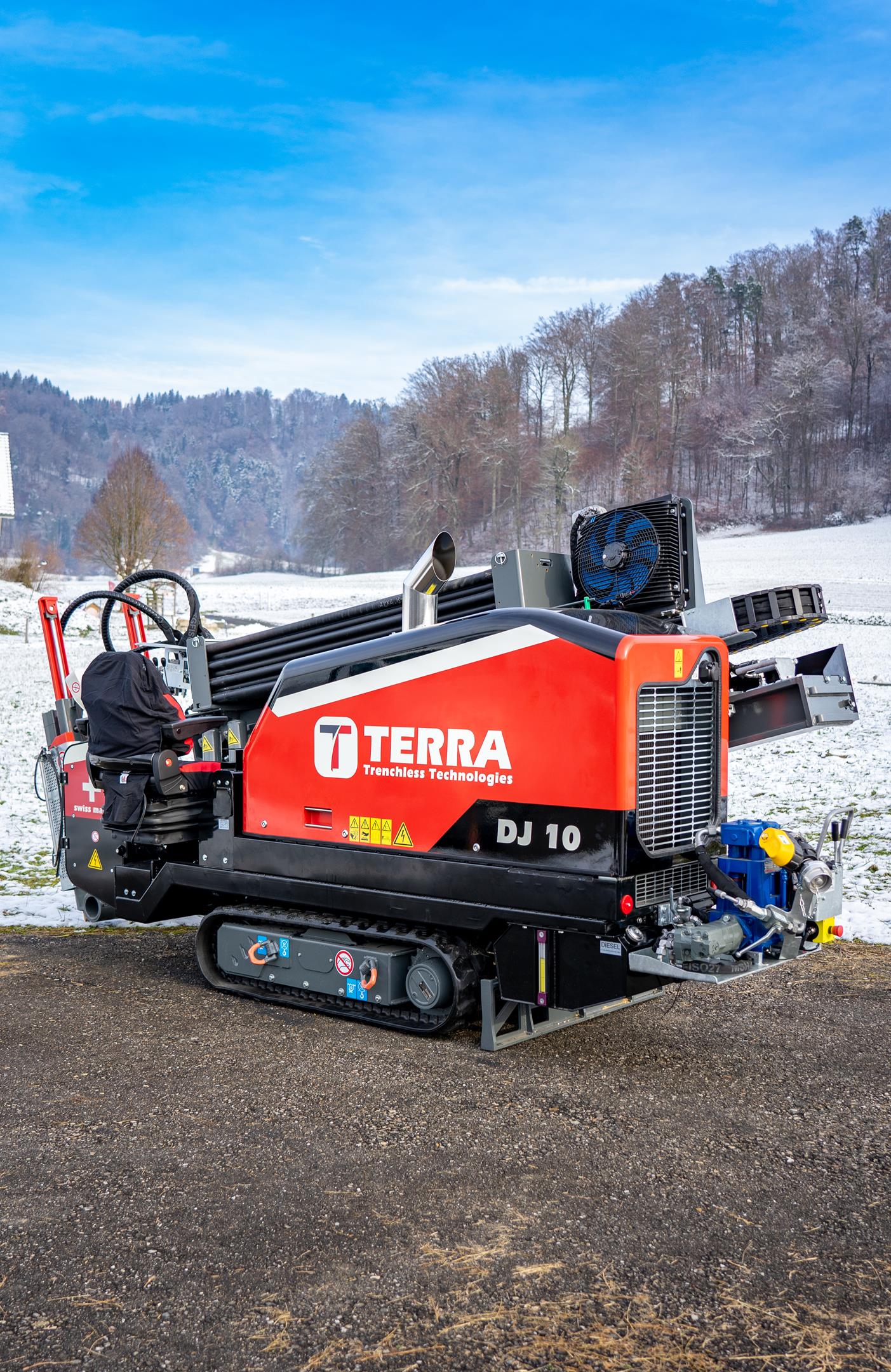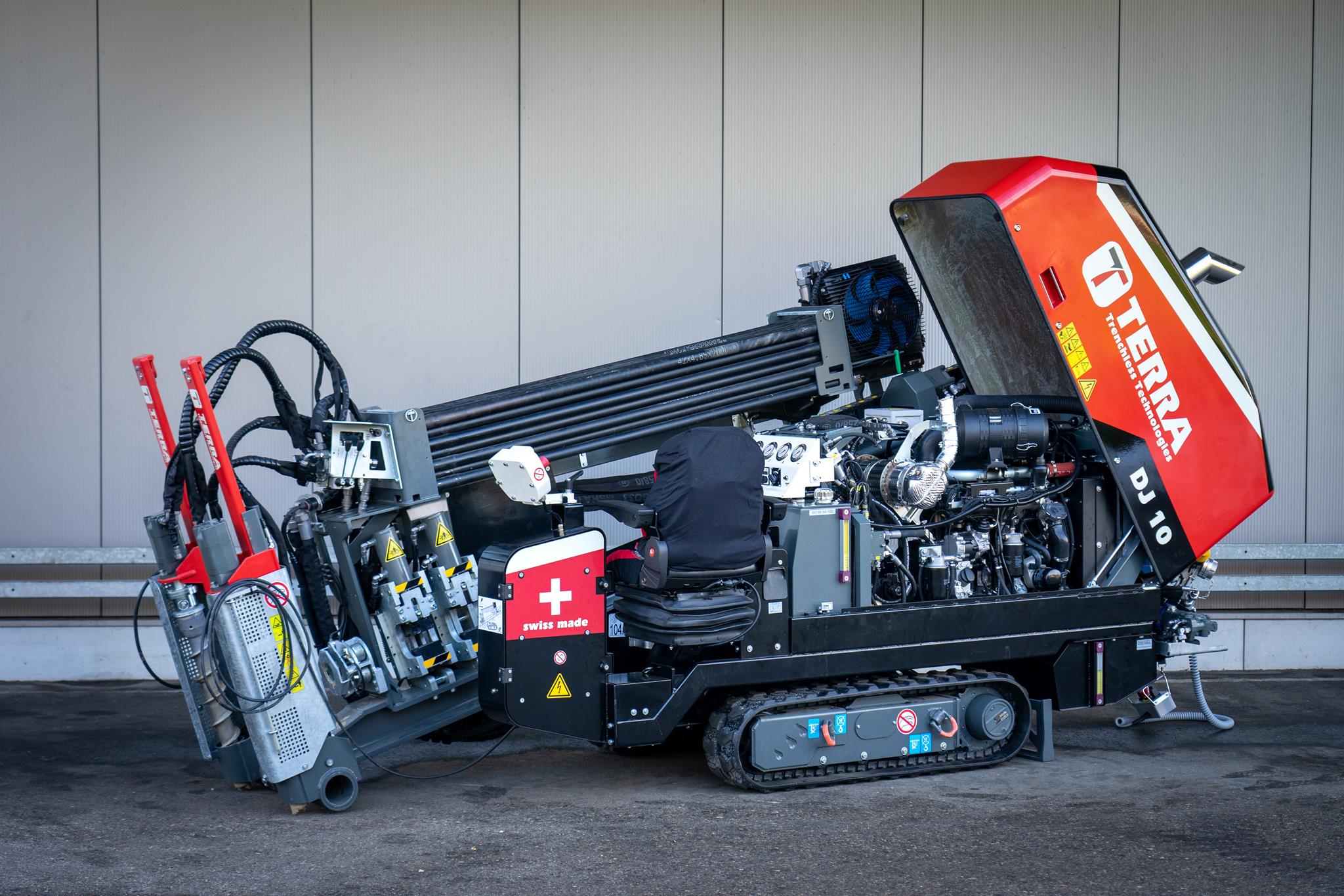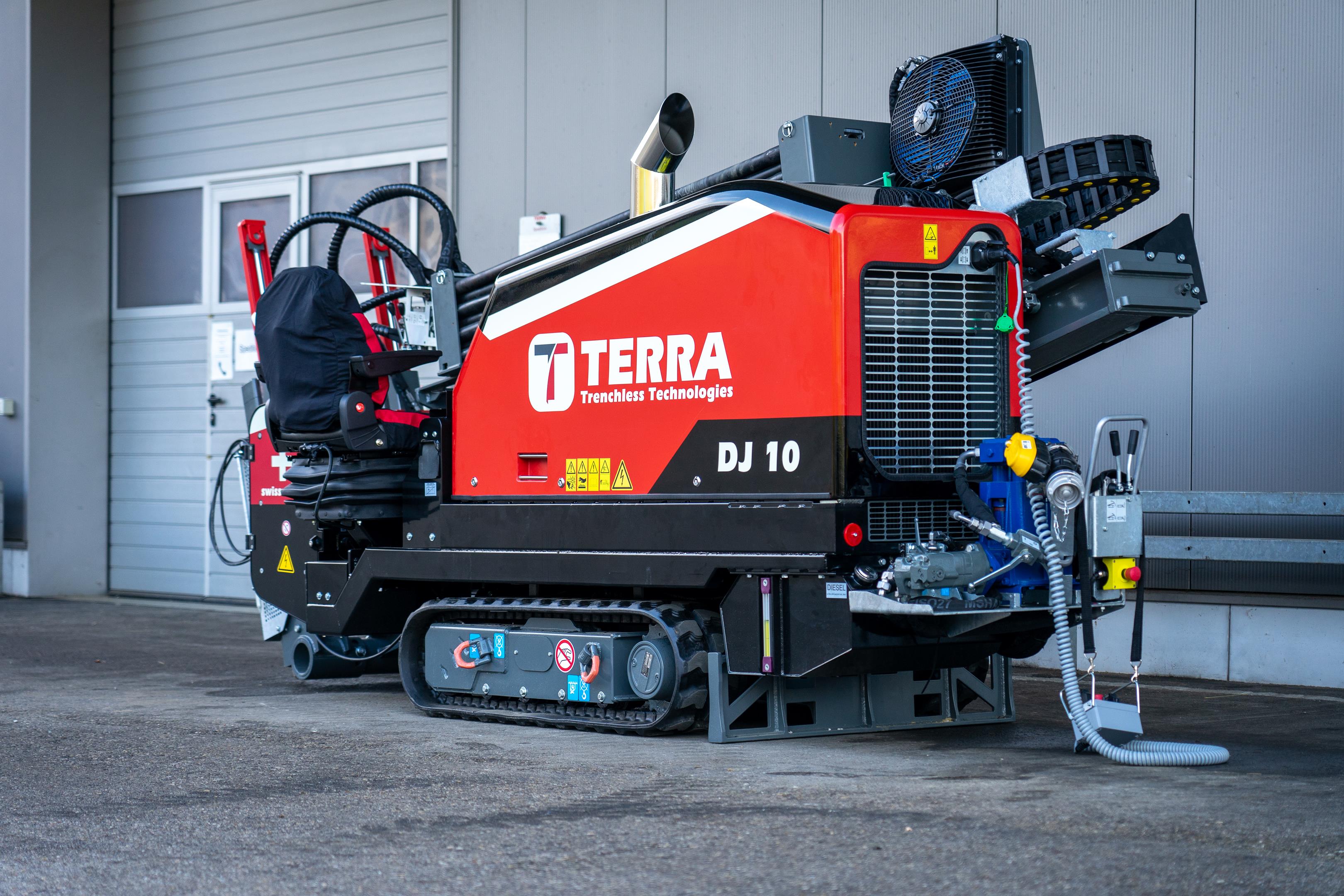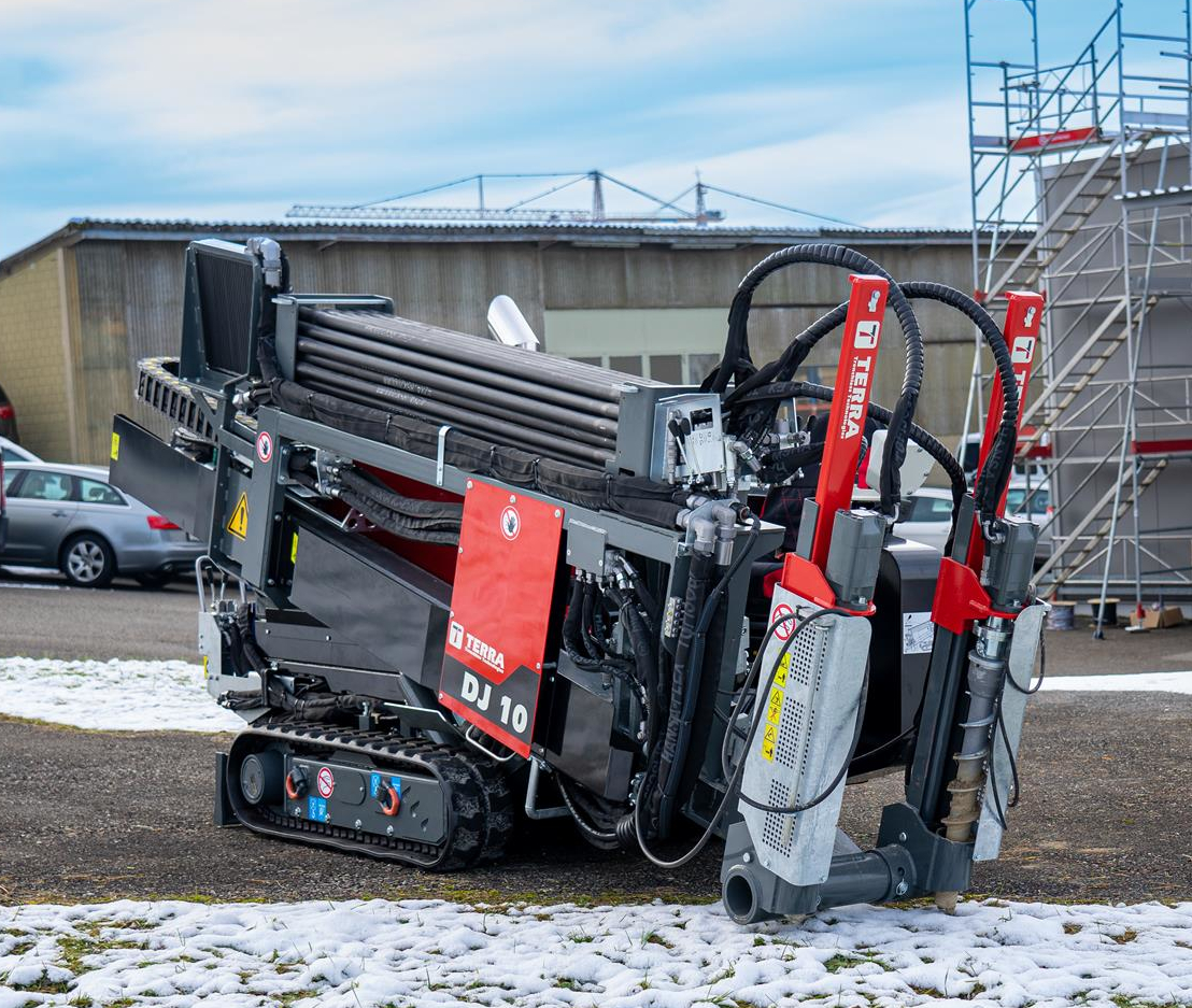 Der TERRA-JET DJ 10 ist eine der leistungsstärksten HDD-Bohranlagen in der 4-Tonnen-Klasse. Ausgestattet mit einem 75 PS starkem HATZ-Dieselmotor (Euro-Stufe-5) leistet die DJ 10 bis zu 4.2 Tonnen Zug- und Schubkraft sowie 1‘800 Nm Drehmoment bei voller Umdrehung am Bohrgestänge von 200 U/min. Die DJ 10 hat einen kleinen CO2-Fussabdruck und eine kurze Installationsdauer. Sie ist somit ideal geeignet im innerstädtischen Gebiet mit beengten Platzverhältnissen.