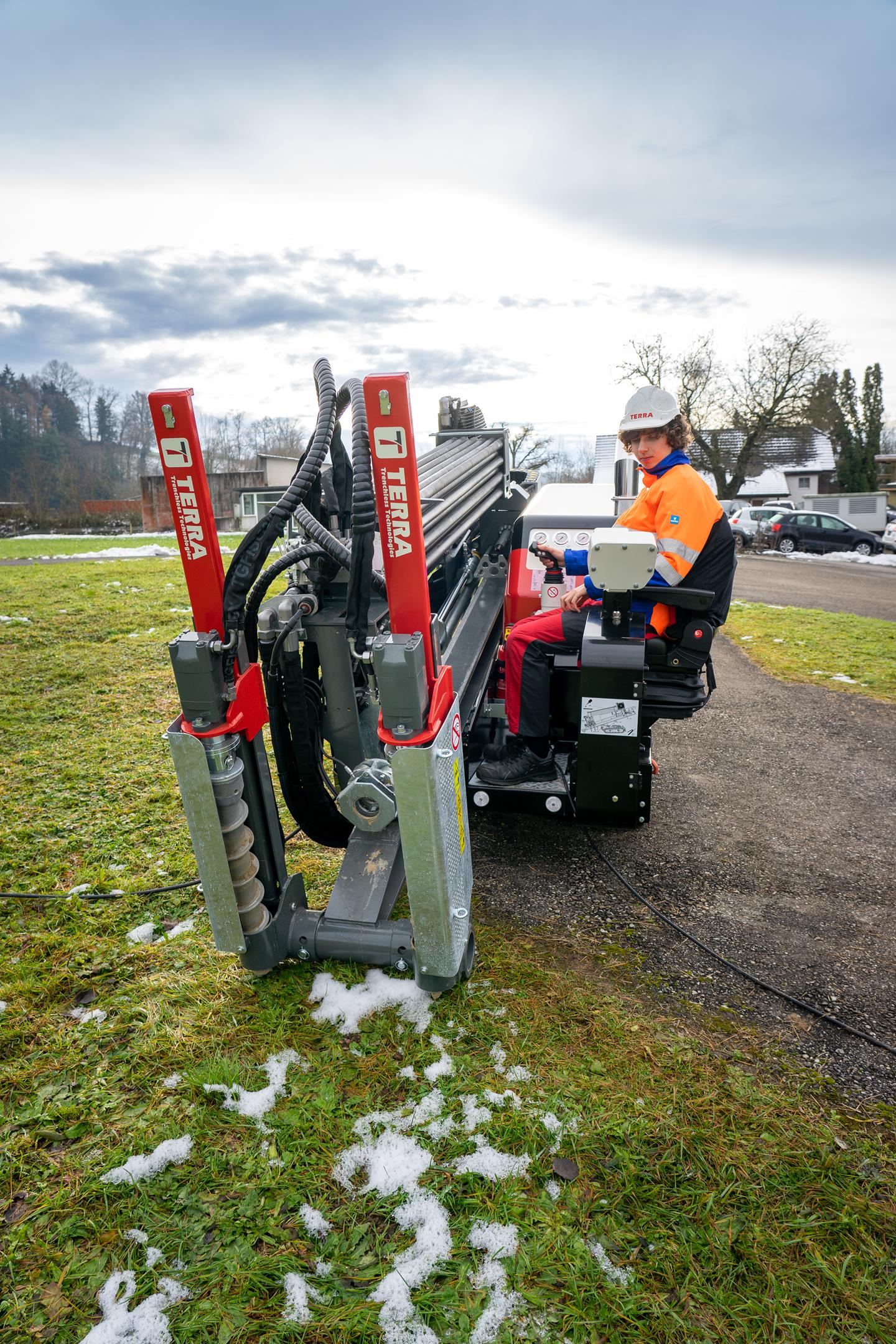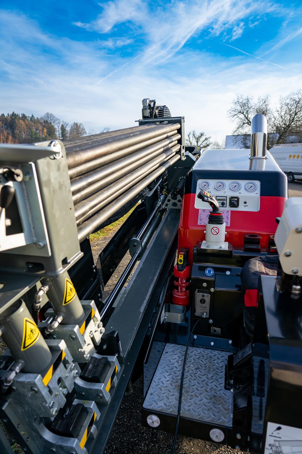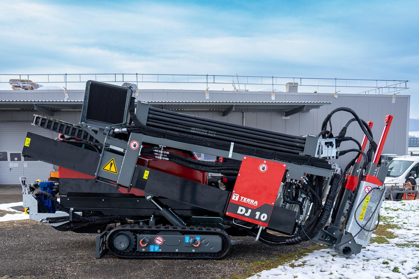 Der TERRA-JET DJ 10 ist eine der leistungsstärksten HDD-Bohranlagen in der 4-Tonnen-Klasse. Ausgestattet mit einem 75 PS starkem HATZ-Dieselmotor (Euro-Stufe-5) leistet die DJ 10 bis zu 4.2 Tonnen Zug- und Schubkraft sowie 1‘800 Nm Drehmoment bei voller Umdrehung am Bohrgestänge von 200 U/min. Die DJ 10 hat einen kleinen CO2-Fussabdruck und eine kurze Installationsdauer. Sie ist somit ideal geeignet im innerstädtischen Gebiet mit beengten Platzverhältnissen.