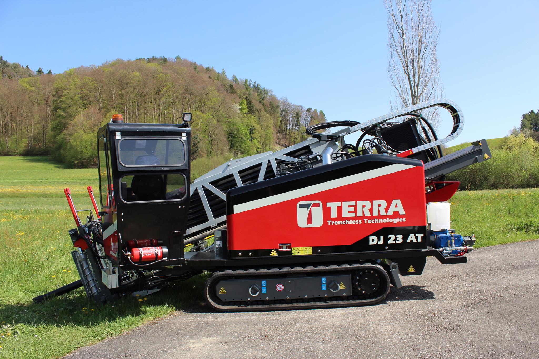 Der TERRA-JET DJ 23 AT, eine leistungsstarke HDD-Spülbohranlage, die speziell für das Bohren in Felsformationen entwickelt wurde.