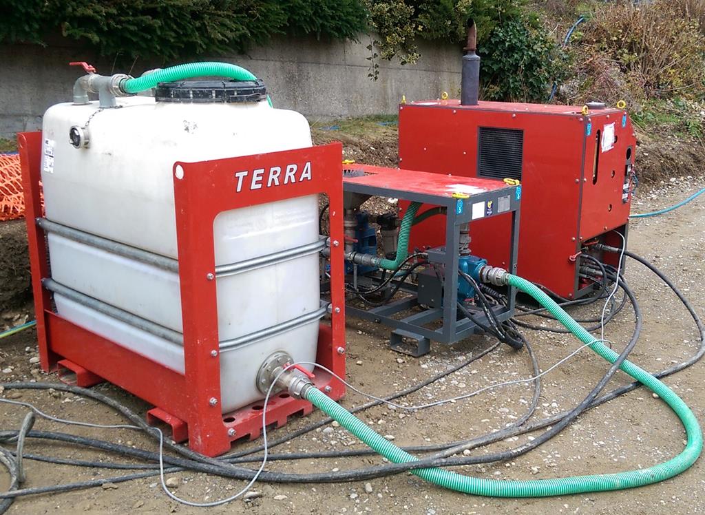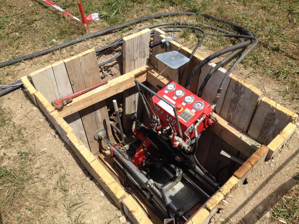 Die Grubenbohranlage TERRA MINI-JET MJ 1600 ist eine der leistungsstärksten und produktivsten Kompakt-Bohranlagen, die heute weltweit angeboten wird. Ausgestattet mit einem 57 PS starkem HATZ Diesel Motor (Euro Stufe 5) leistet der TERRA MINI-JET MJ 1600 bis zu 6 Tonnen Zug- und Schubkraft sowie 1.‘600 Nm Drehmoment. Mit den 52 l/min Spülmenge können so Bohrkanäle bis 300 mm über Längen bis 50 m hergestellt werden (untergrundsabhängig). Optional werden sogar 95 l/min angeboten.
